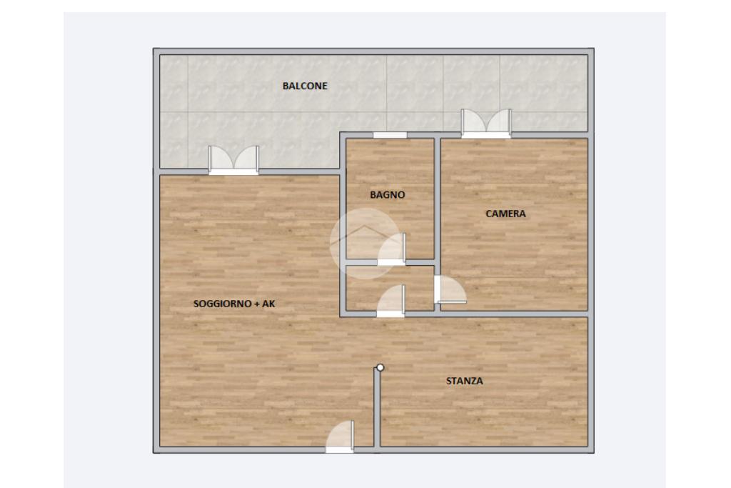 La soluzione si compone da soggiorno open space con angolo cottura e accesso diretto al balcone vivibile atrezzato.