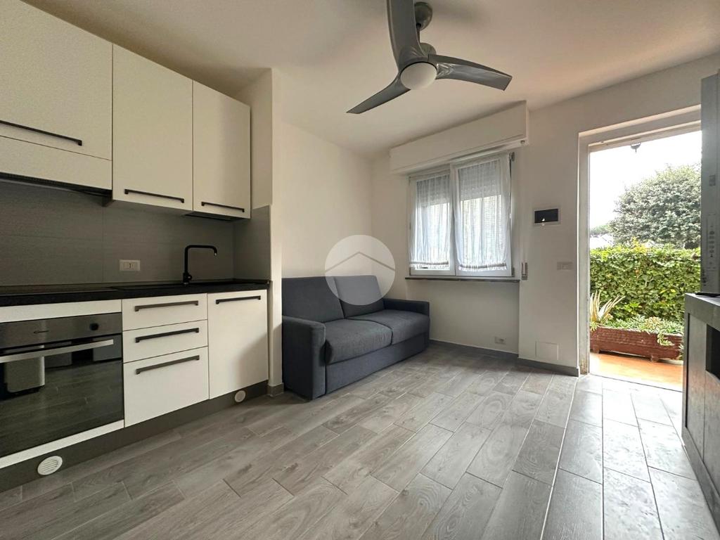 La soluzione è composta da soggiorno, angolo cottura, una camera da letto ed un bagno completo di box doccia e lavatrice.