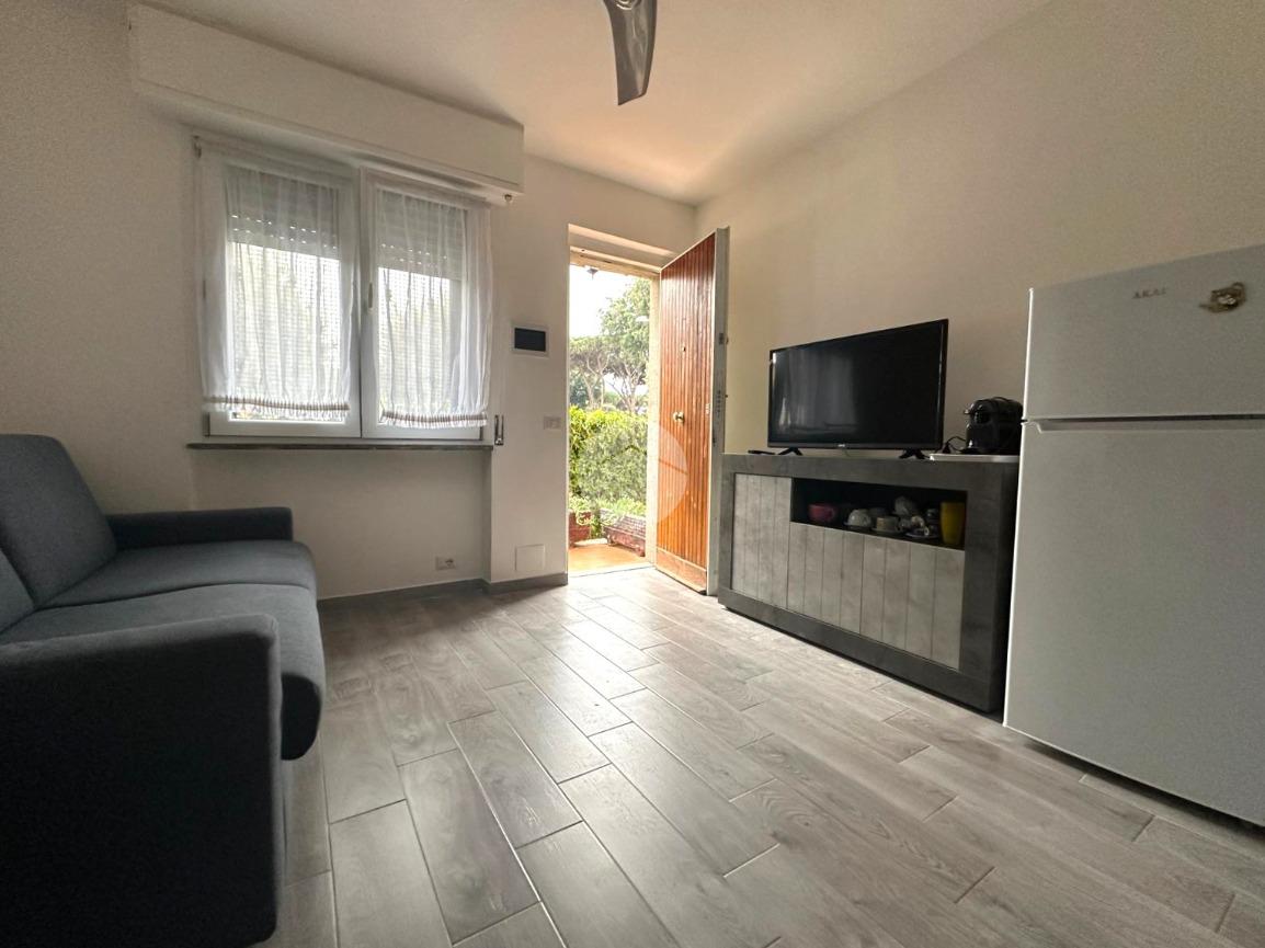 A 150 metri dal centro proponiamo un piano terra rialzato con sfogo esterno mattonato e giardino condominiale.