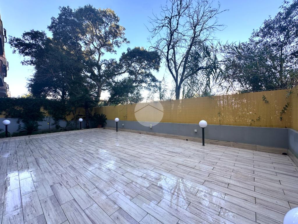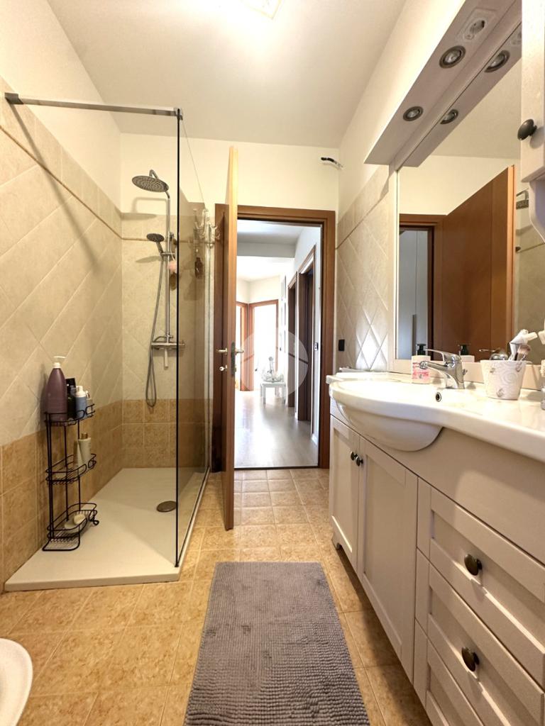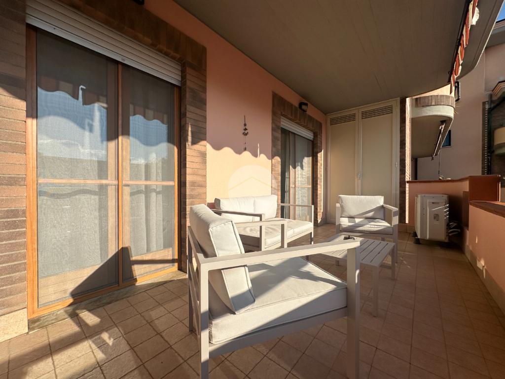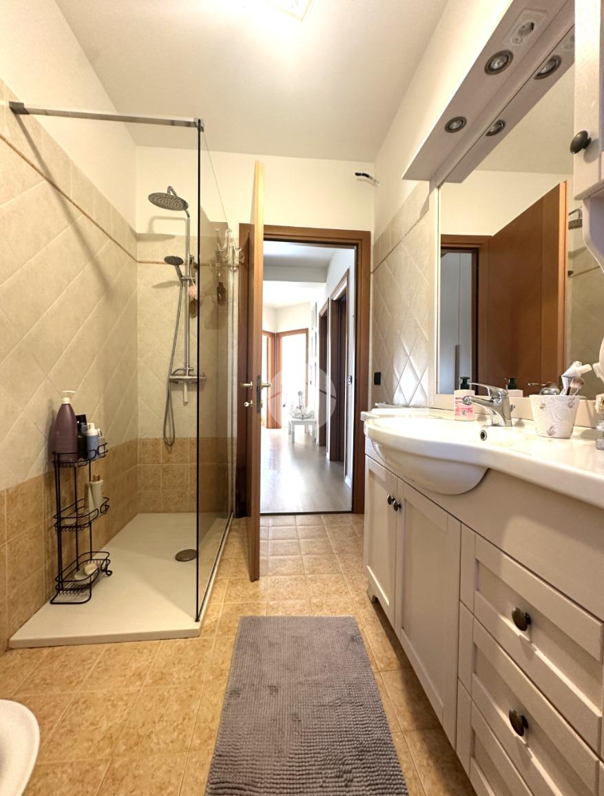 L’ingresso si apre sul salone con porta finestra che conduce sul terrazzo abitabile di 22 mq, perfetto per momenti di relax all’aperto. Questo terrazzo presenta inoltre due pratici armadi a muro, di cui uno utilizzato come lavanderia.
