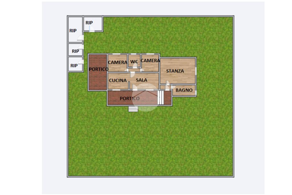La casa è posta su piano rialzato. Il portico conduce all’ingresso dell’ immobile, composto da un soggiorno con angolo cottura , due camere da letto ed un primo bagno di servizio. Un secondo bagno completo di doccia è presente nella parte adiacente alla soluzione principale, in cui è presente inoltre un open space che si può adattare a seconda delle proprie esigenze.